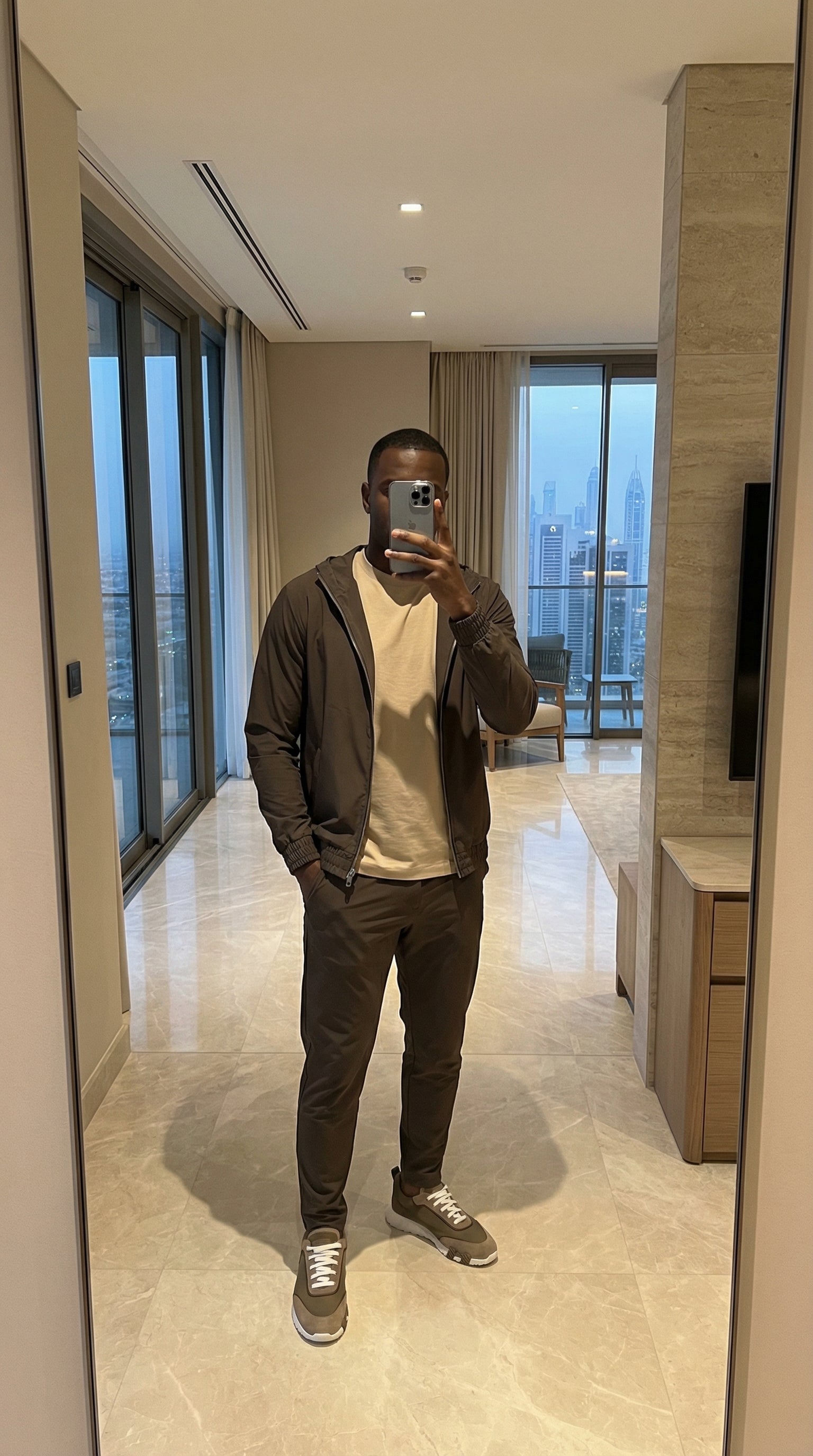 A two-piece of jacket and trousers, crafted from a premium blend of polyamide and elastane. Woven in South Korea, finished in Europe.